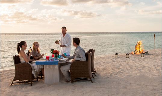 您可选择在自己的别墅内或沙滩上享用一顿浪漫的烛光烧烤晚餐。您的私人厨师及服务生将为您提供无微不至的服务。