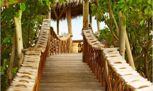 宽大的坐垫和躺椅都被巧妙地摆放,以便让客人选择私密的或是热闹的聚会,品味北非和黎巴嫩的小餐点或冷冻鸡尾酒。有些人会在吃饭前喝点小酒,观看马尔代夫夕阳话剧,但还有些人可能会选择登上树屋,用望远镜以前所未有的角度观看星空。