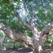 法桐公园弧形生长的树冠在顶部枝叶交错延蔓,结成绿叶悬垂的拱顶隧道,棵棵梧桐犹...